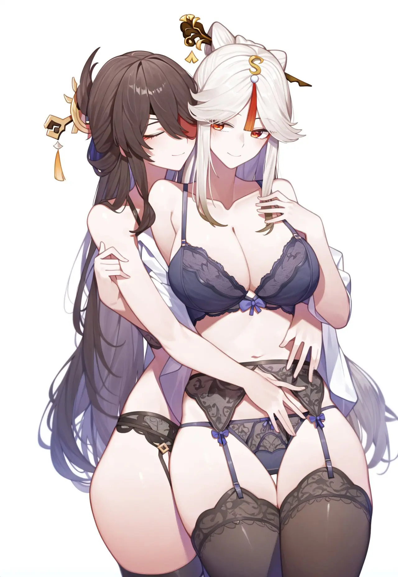 in Beidou, Genshin Impact, Ningguang Beidou and Ningguang in lingerie February 18, 2024, 12:21 pm 200 Views Favorite Big TitsBlushBrown HairClothedFemale onlyGarter StrapsLingerieSmilingStockingsThigh HighsWhite hairYuri What do you think? 637 Points Upvote Downvote See more Previous article Yoruichi in a cute pajama Next article Xenovia Quarta getting throated straight down