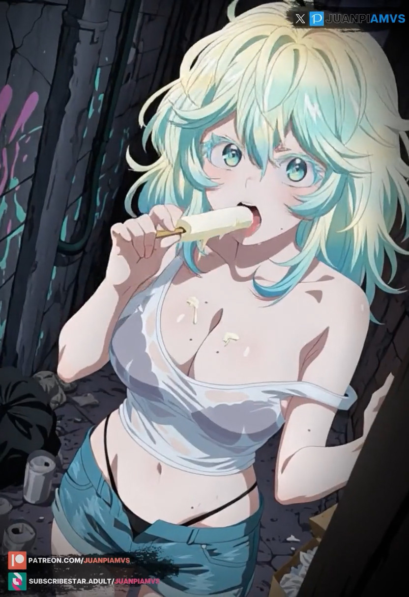 BikiniBlonde HairBlue HairBlushCameltoeClothedFemale onlyMicro BikiniSmilingSpread LegsWet body