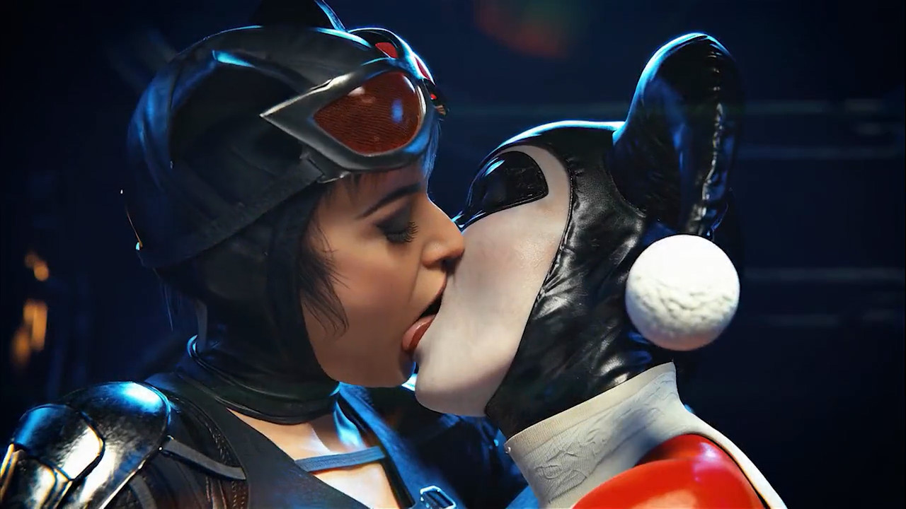Catwoman and Harley Quinn making out animated