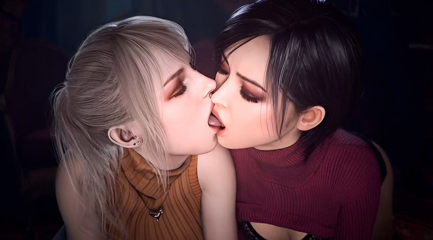 • Ashley Graham and Ada Wong kissing animated